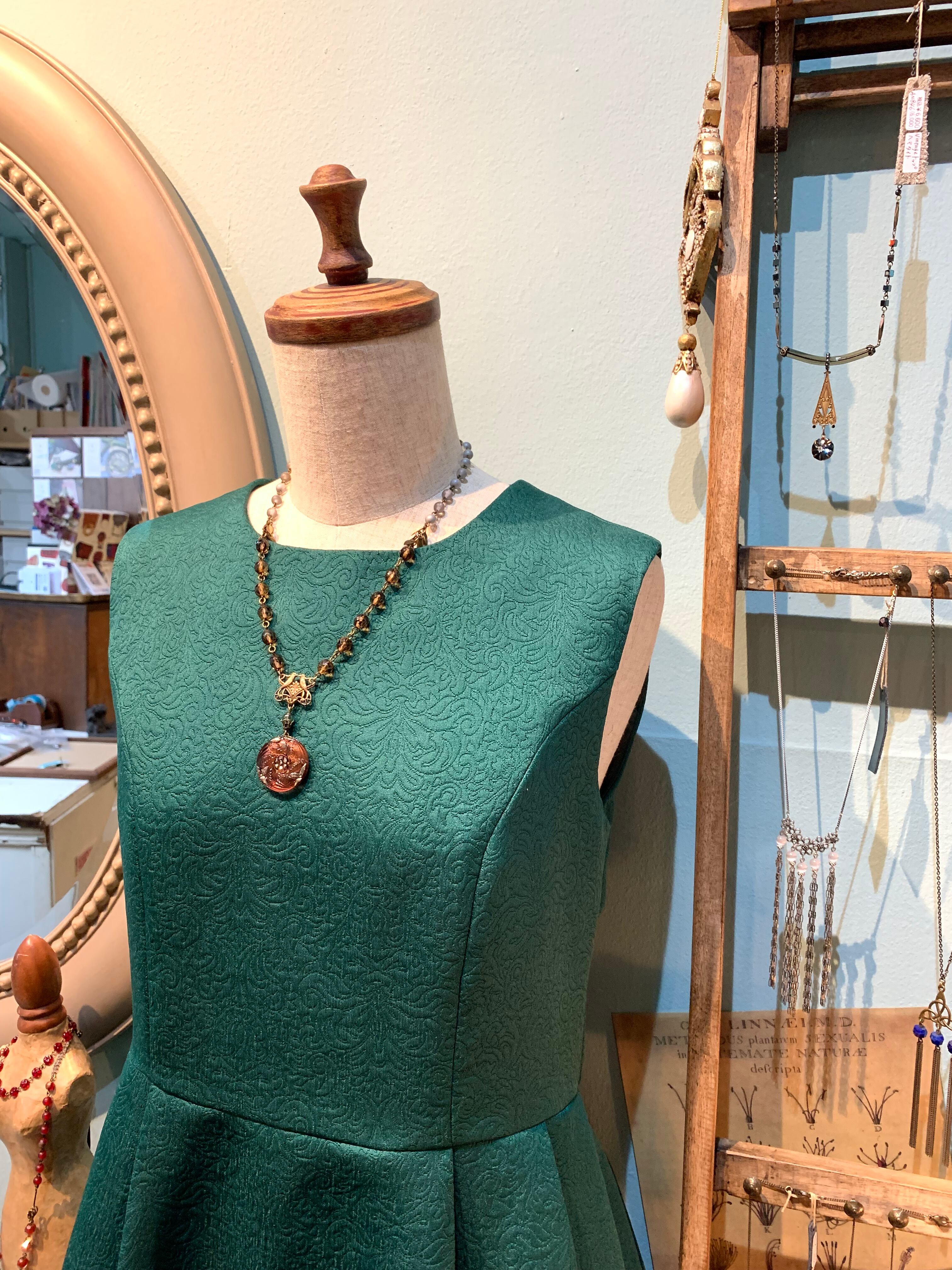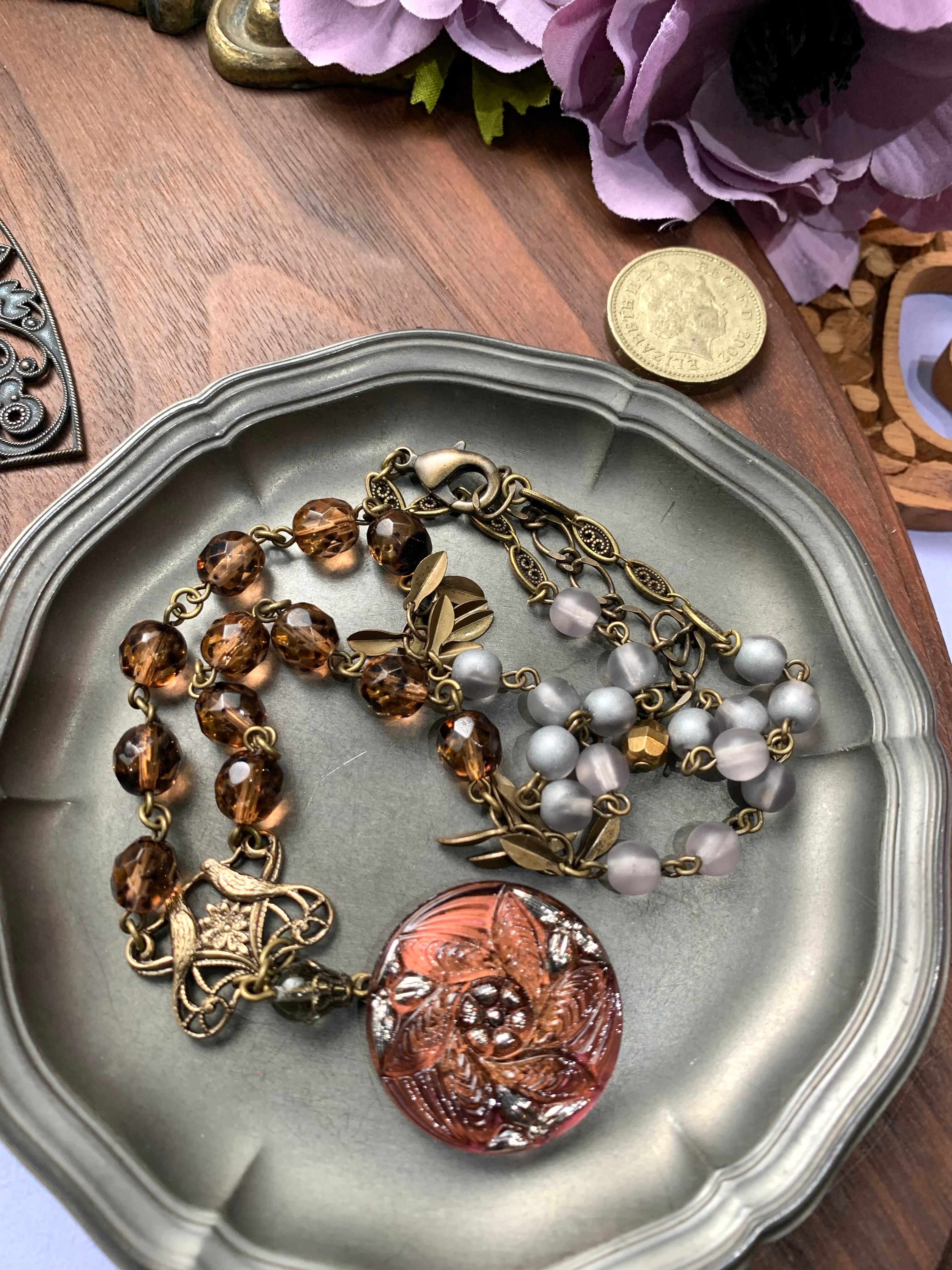 チェコガラスボタンネックレス(パープルブラウン) AN891