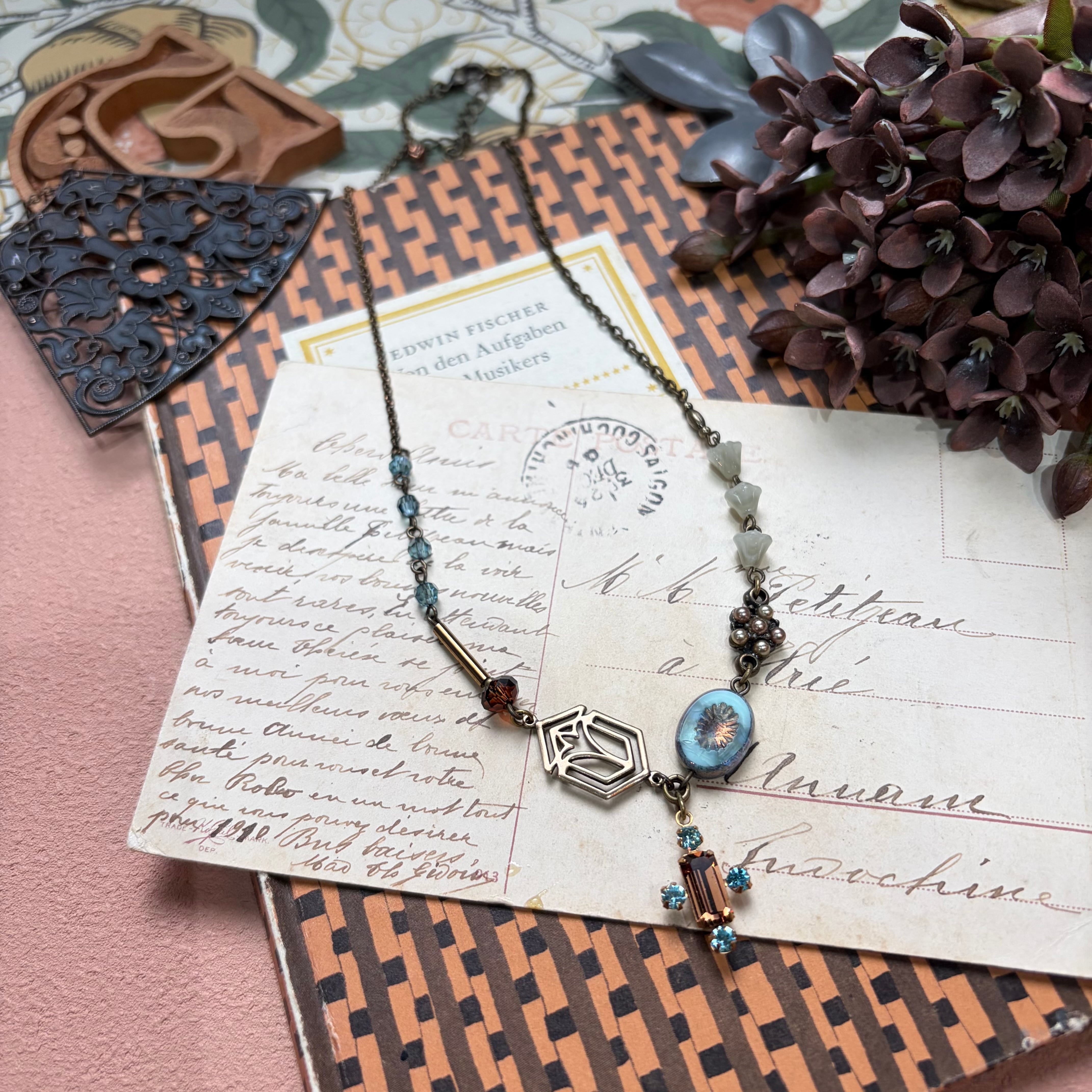 お気に入りのクロス風のヴィンテージチャームのネックレス。