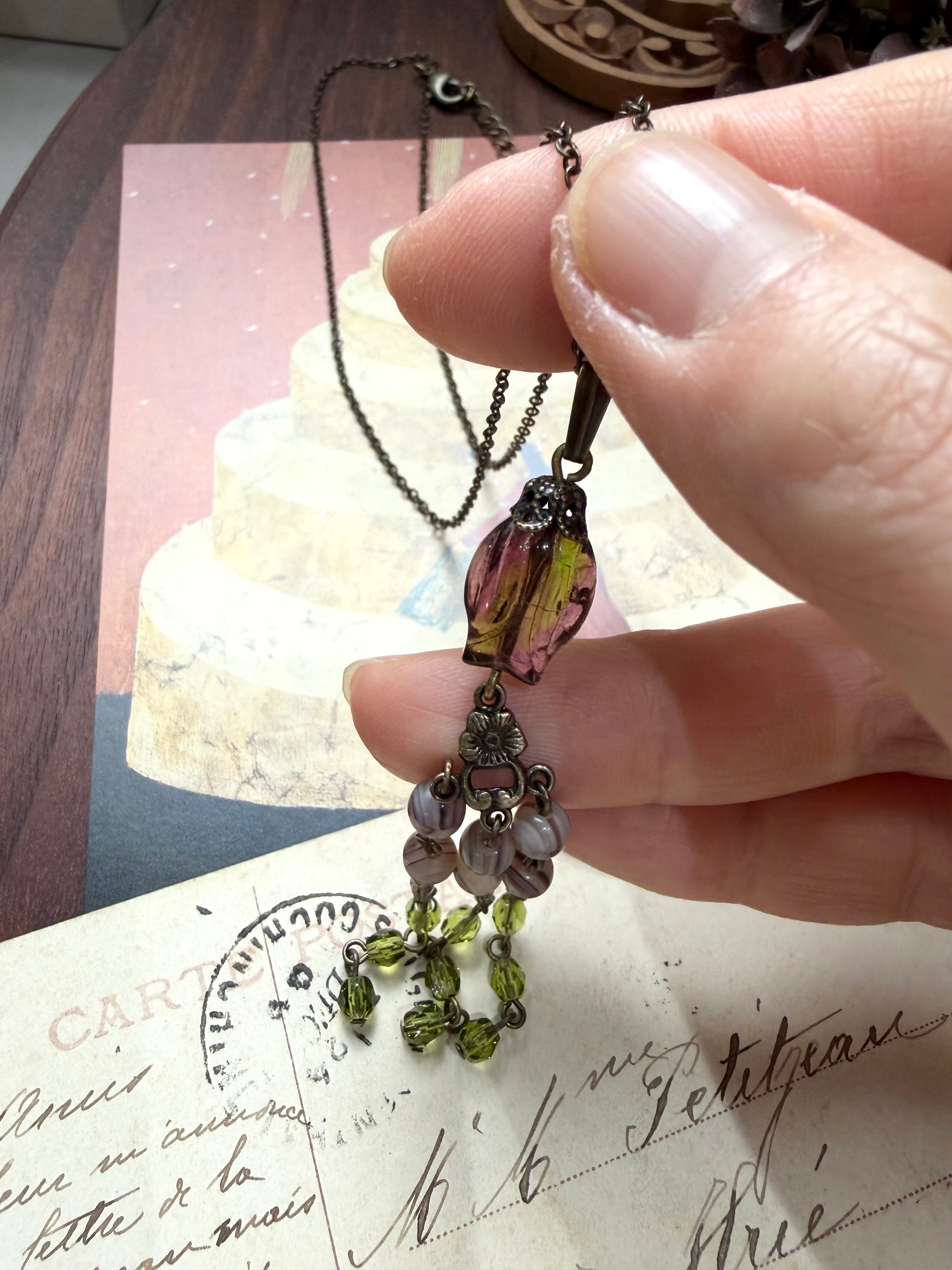 ヴィンテージカラーのチェコの小さなビーズを組み合わせた、やさしい雰囲気のネックレスです。