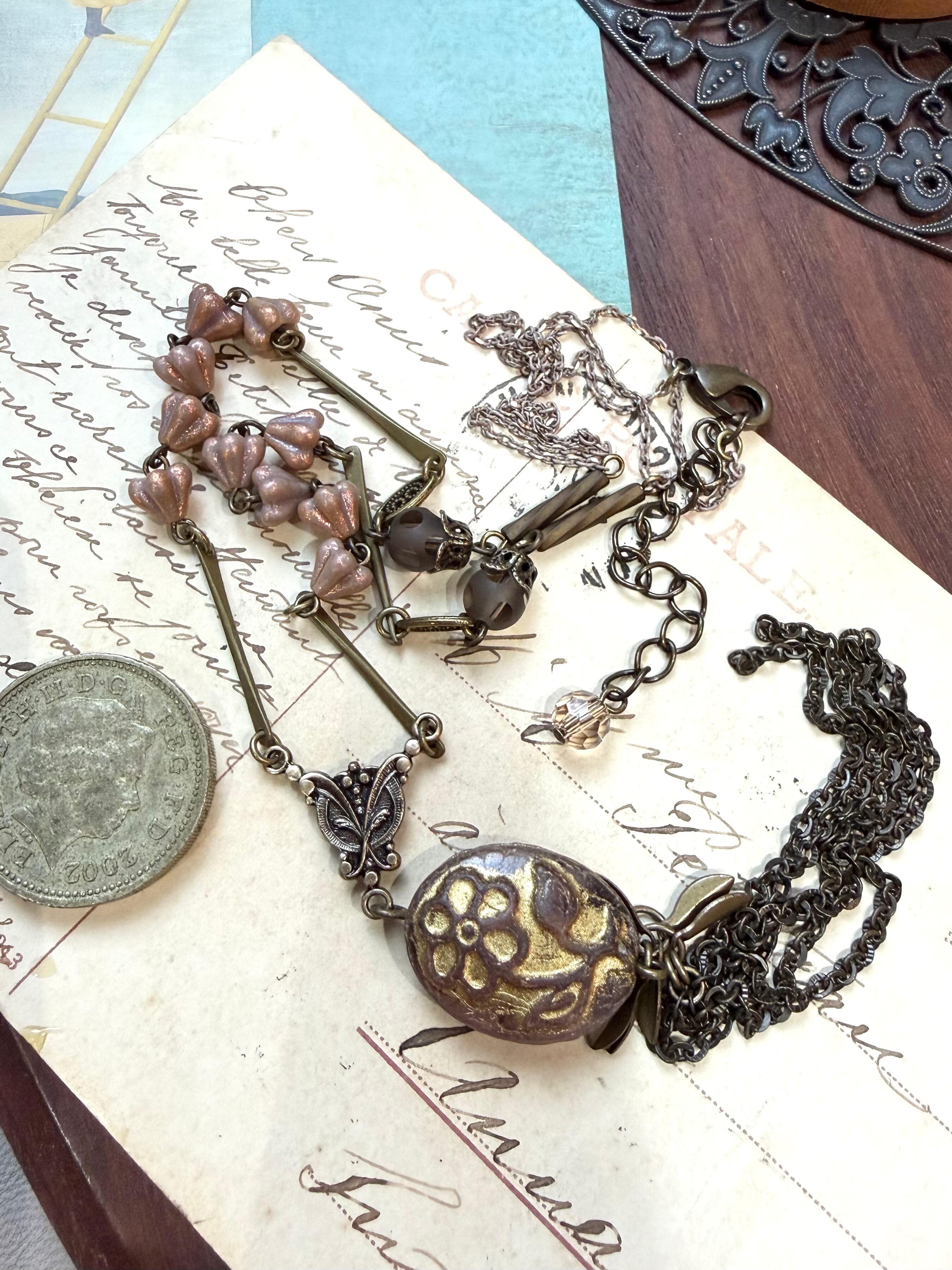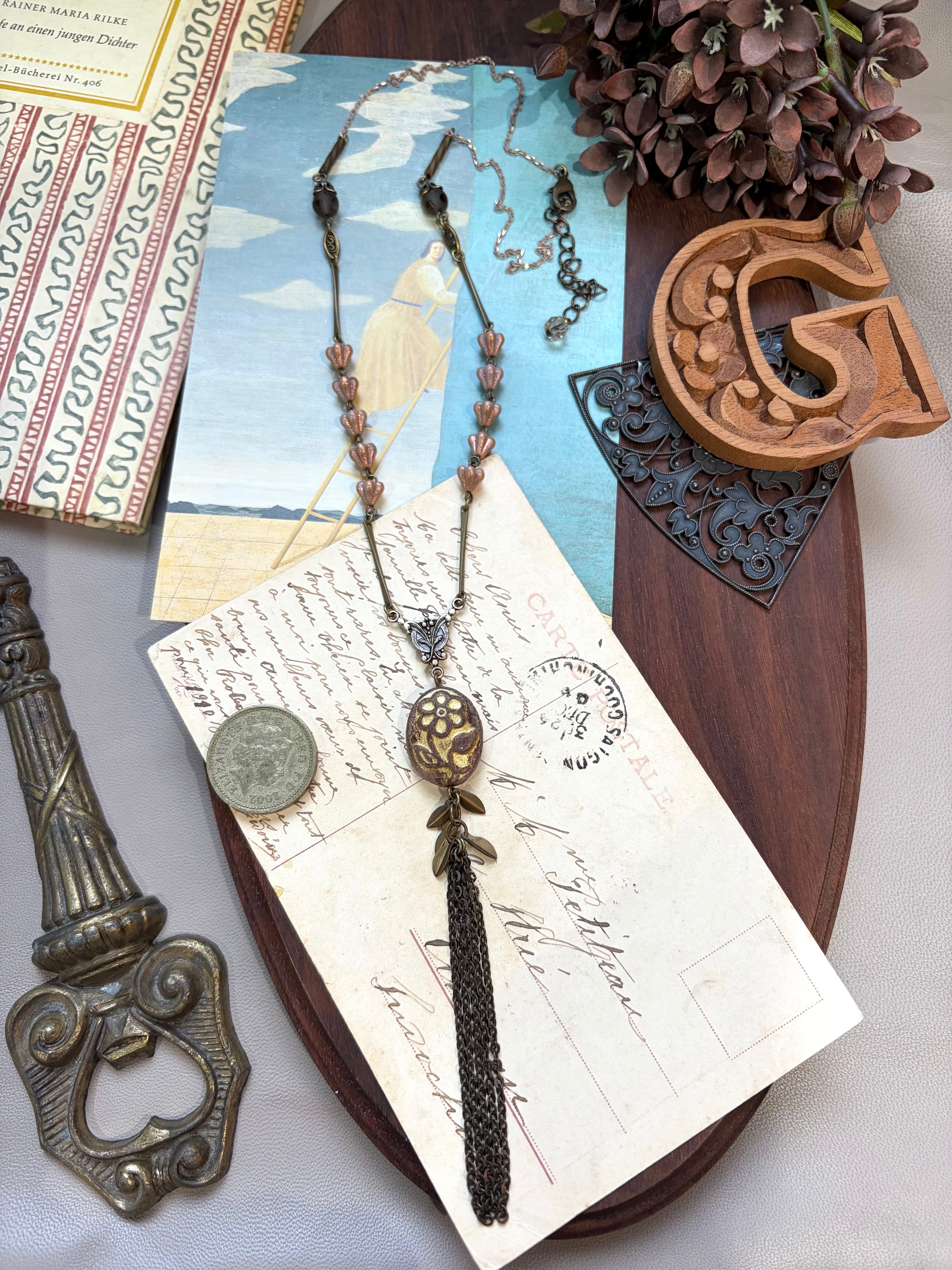 楕円形のお花模様(両面デザイン)のチェコガラスをメインに、使いやすいサイズ感に仕上げました。