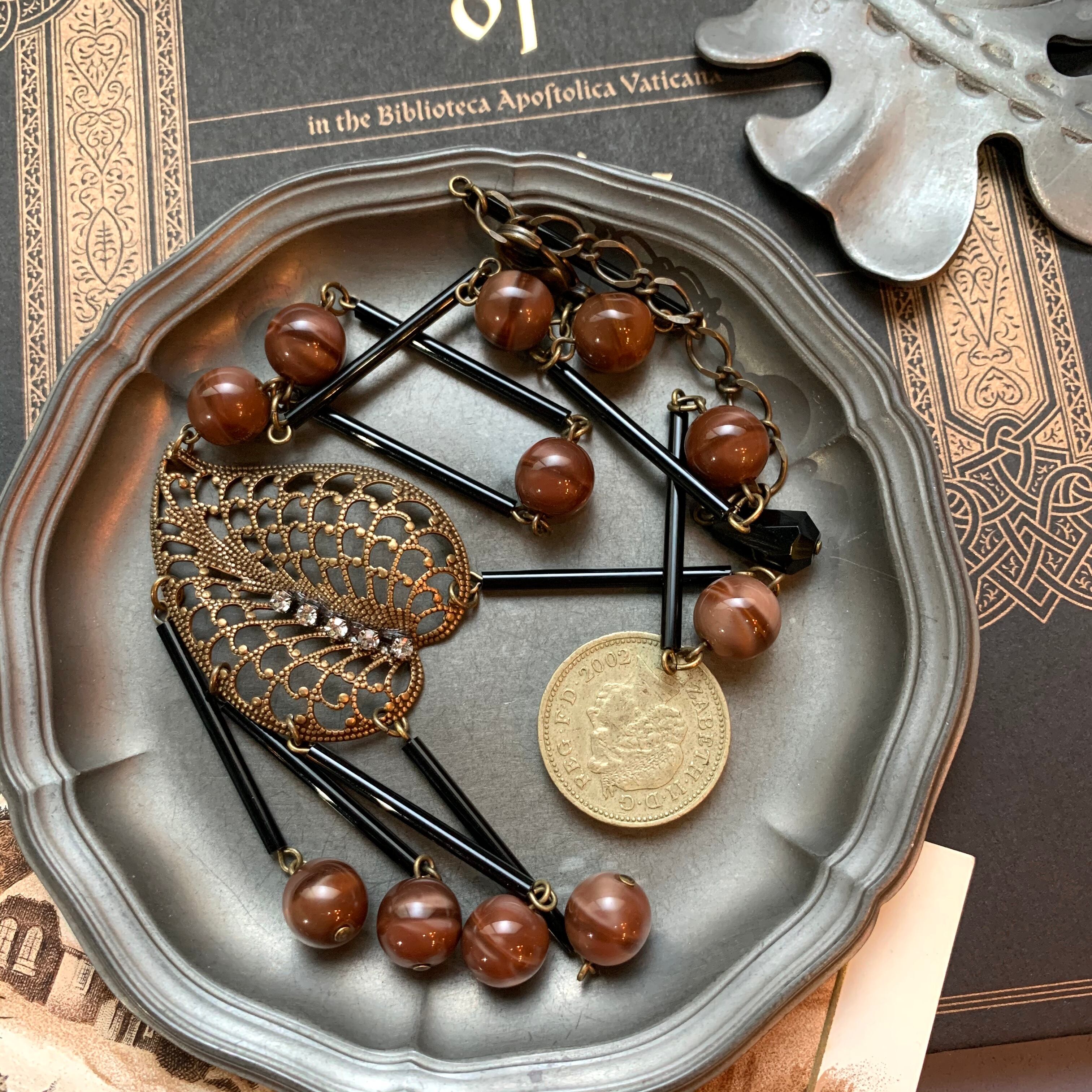 ブラウンBallリーフネックレス AN700