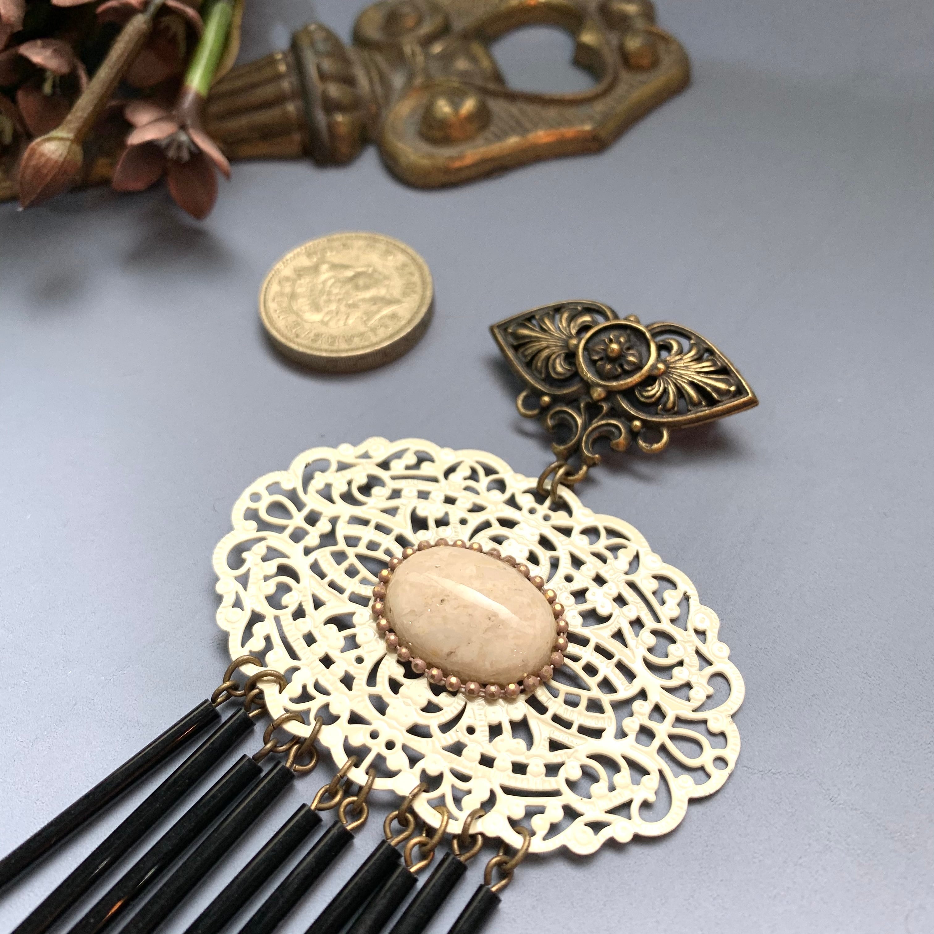 ブローチ金具がアンティーク風でかっこいいです。