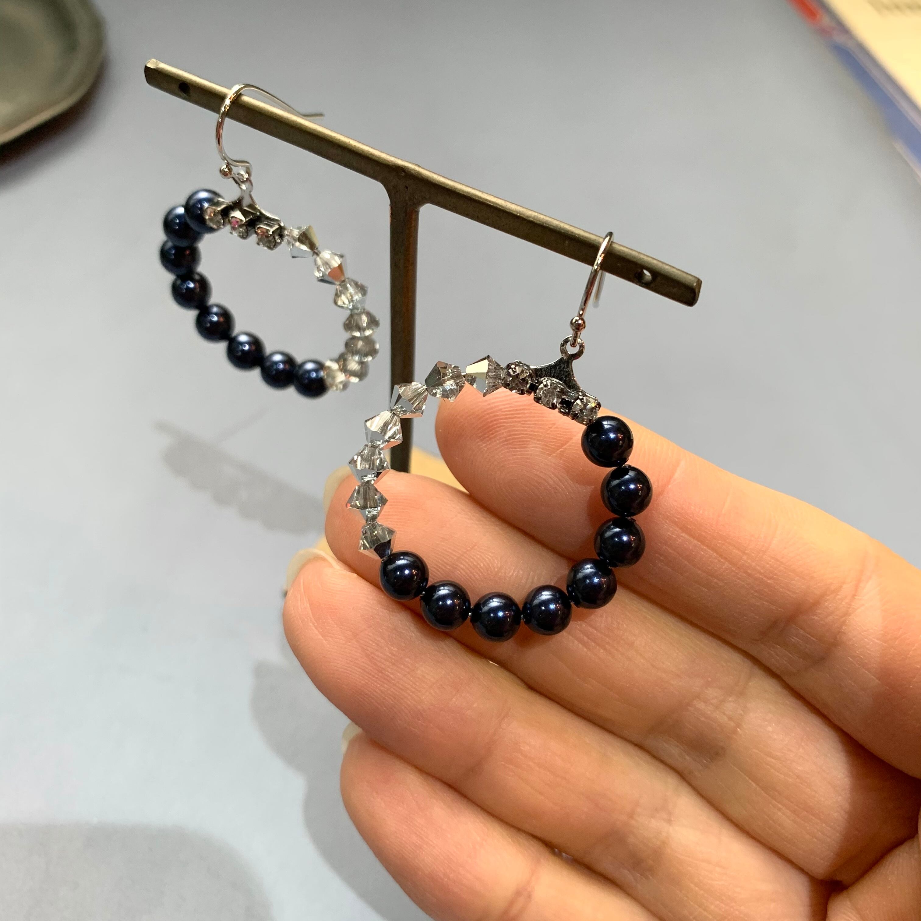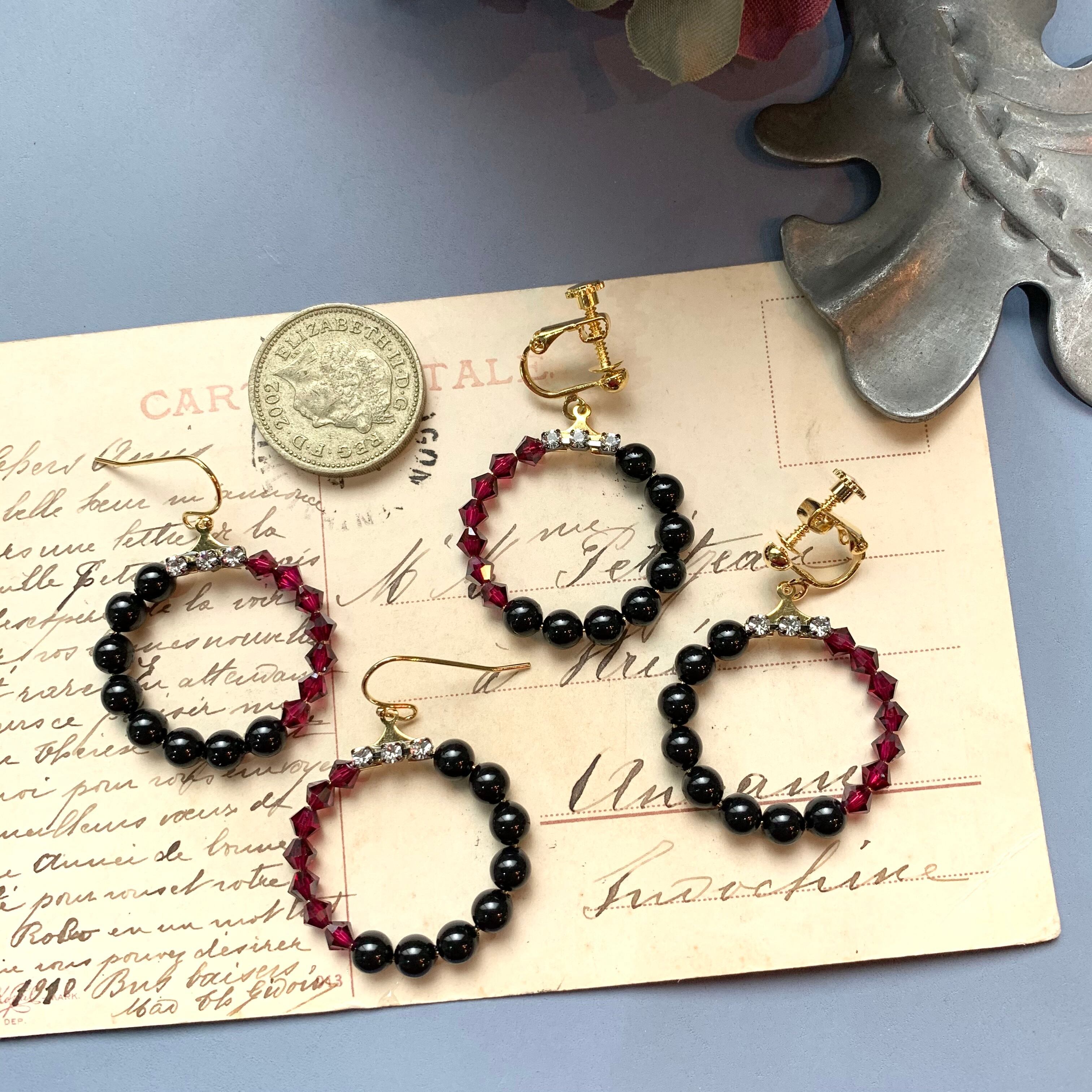 イヤリング→ピアスへの変更は金具が無駄になってしまうことが多いので、1点しかないものはピアスとして作っています。