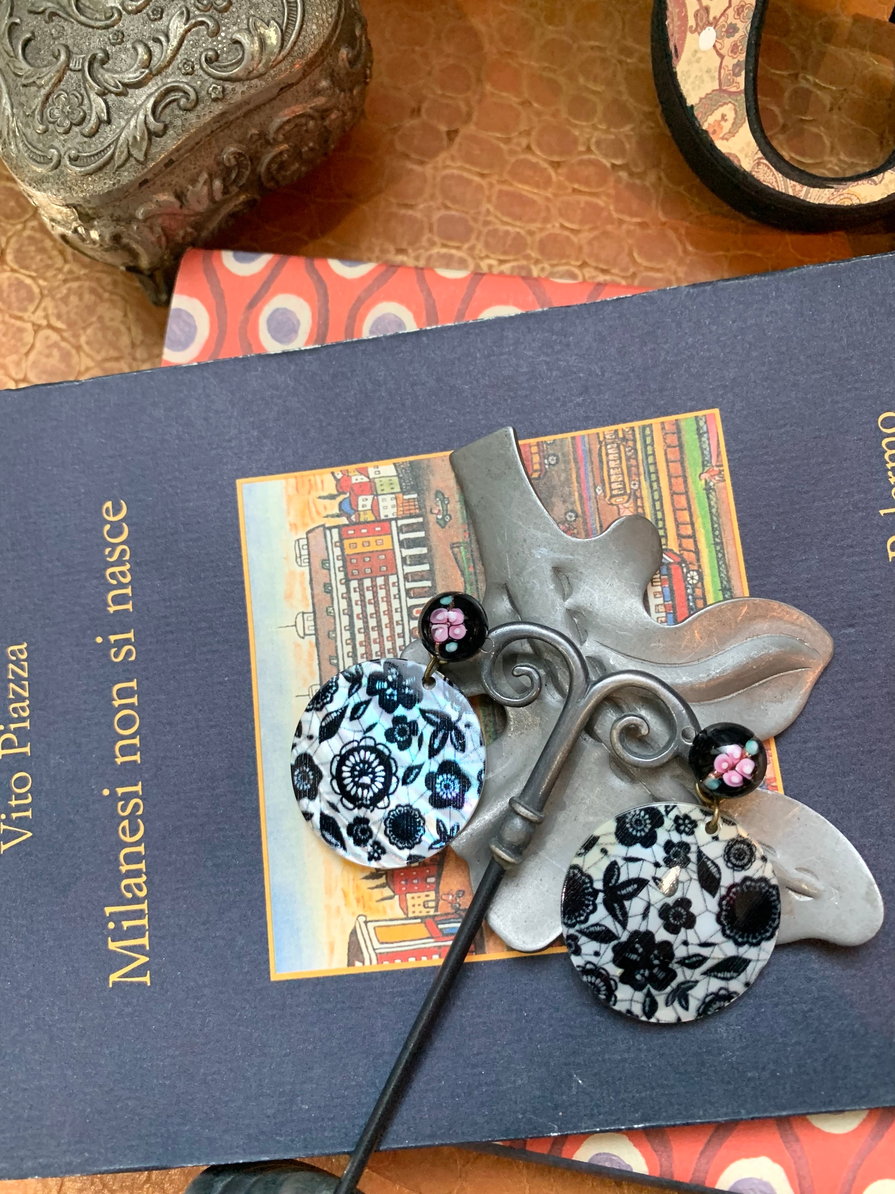 Blackレースシェルプレートピアス AP727
