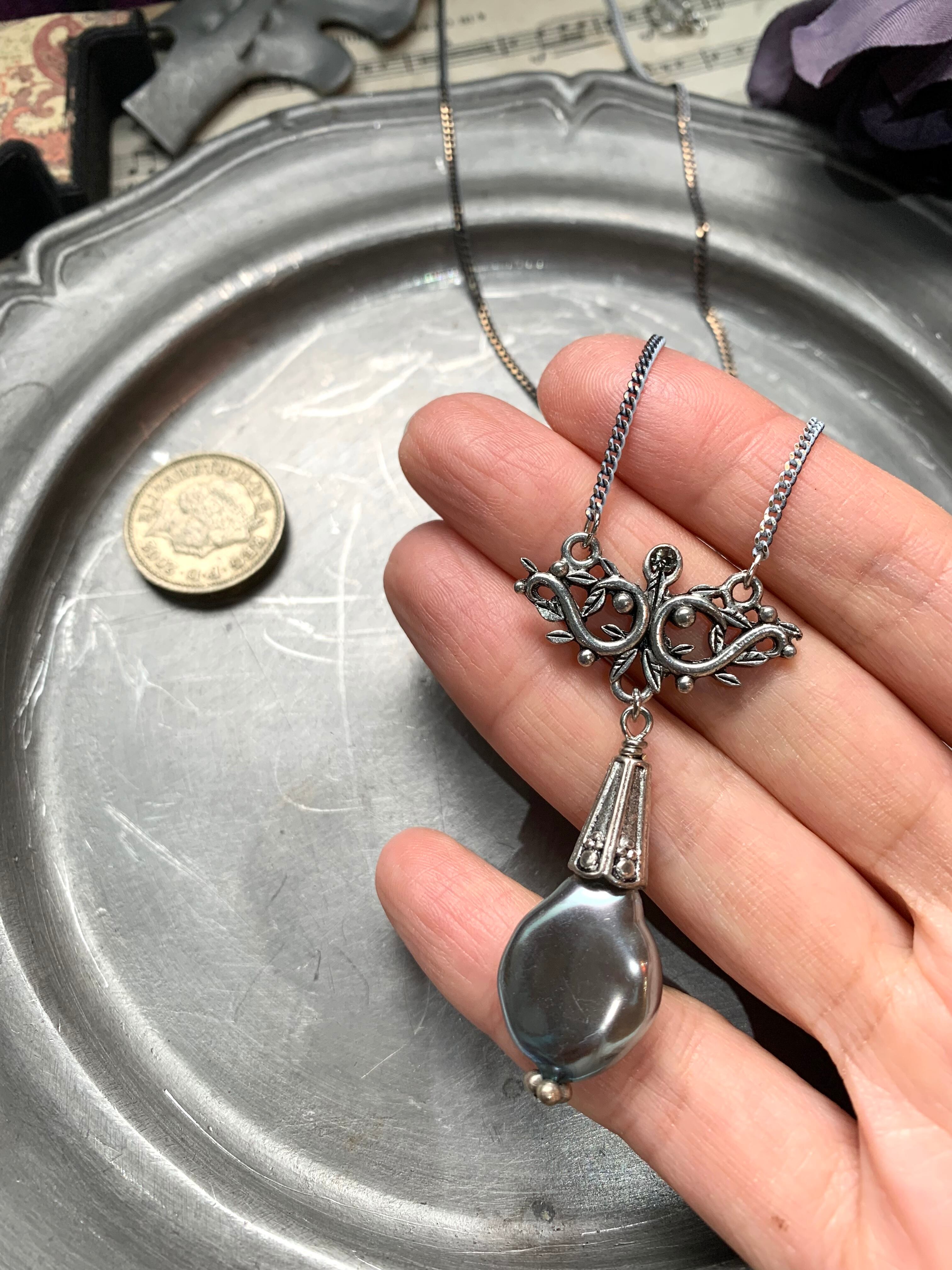 装飾的なメタルパーツのデザインと、つるんとしたパールの対比がいい感じ。