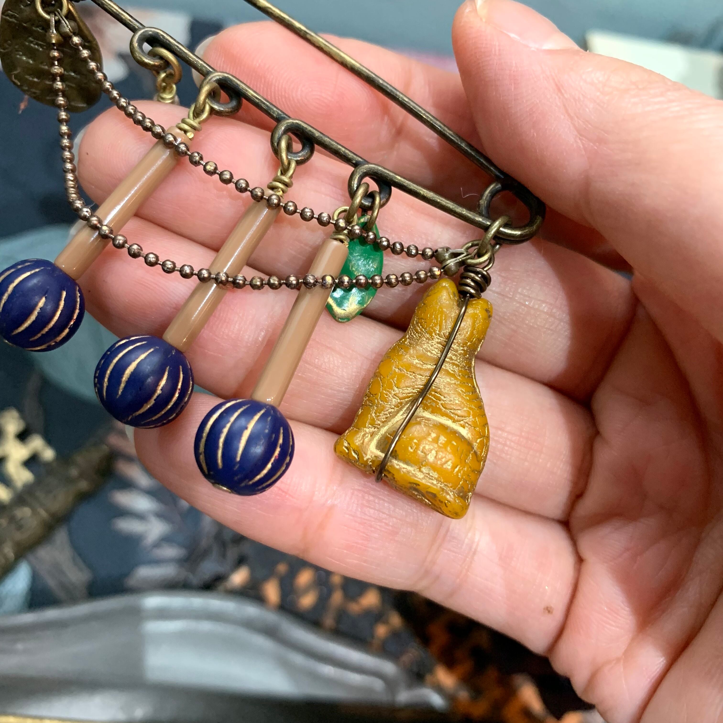 チェコのガラスビーズのネコでこんなに大きいのは見たことがなくて、飾りピンにしたい!と思い購入。