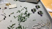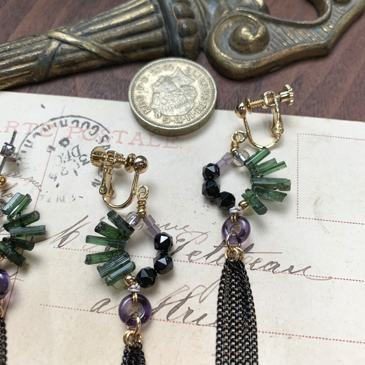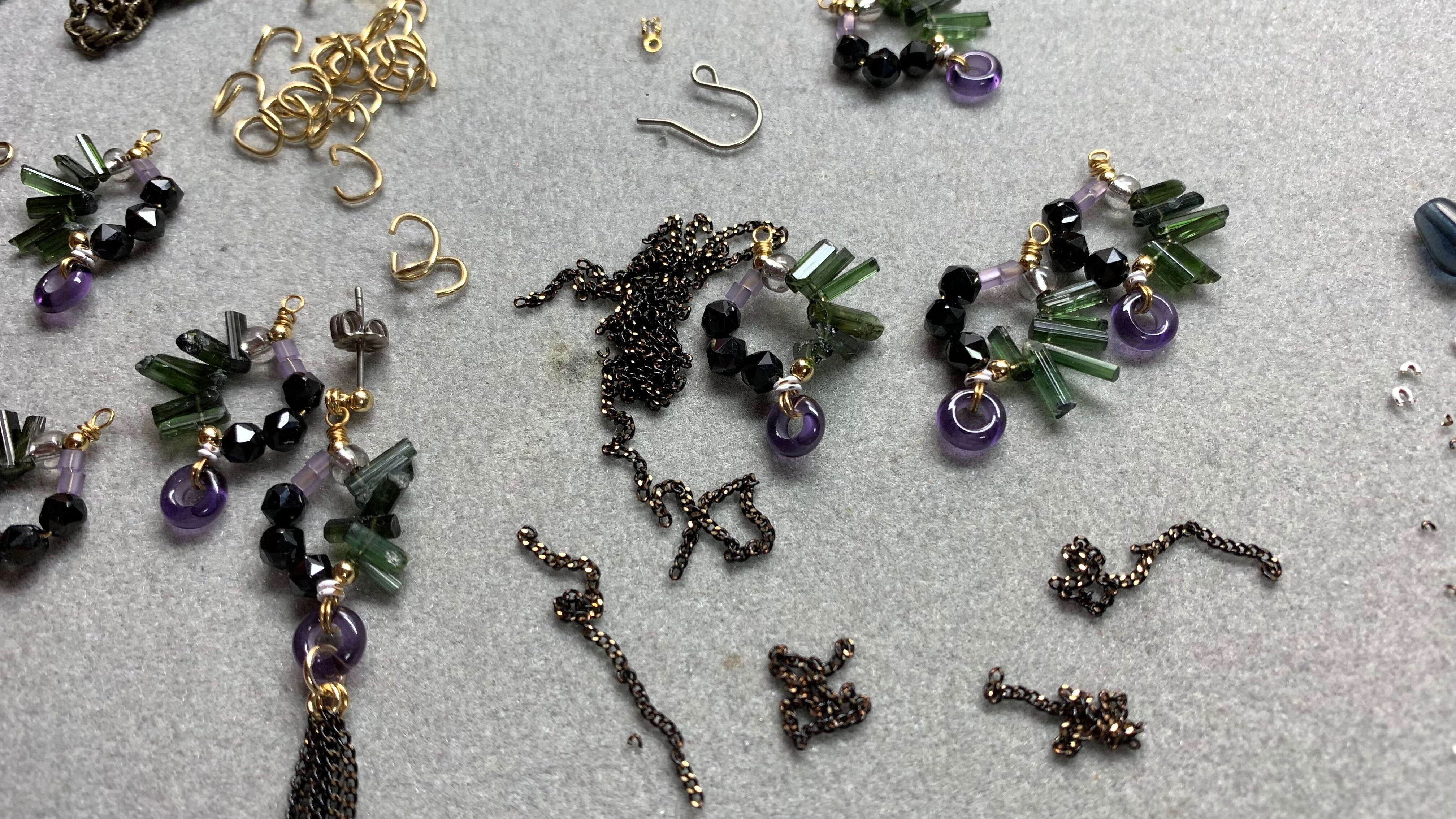 トルマリンは個体差がありまとめるのがむずかしく、迷った末、動かないように裏側を樹脂で固定しました。