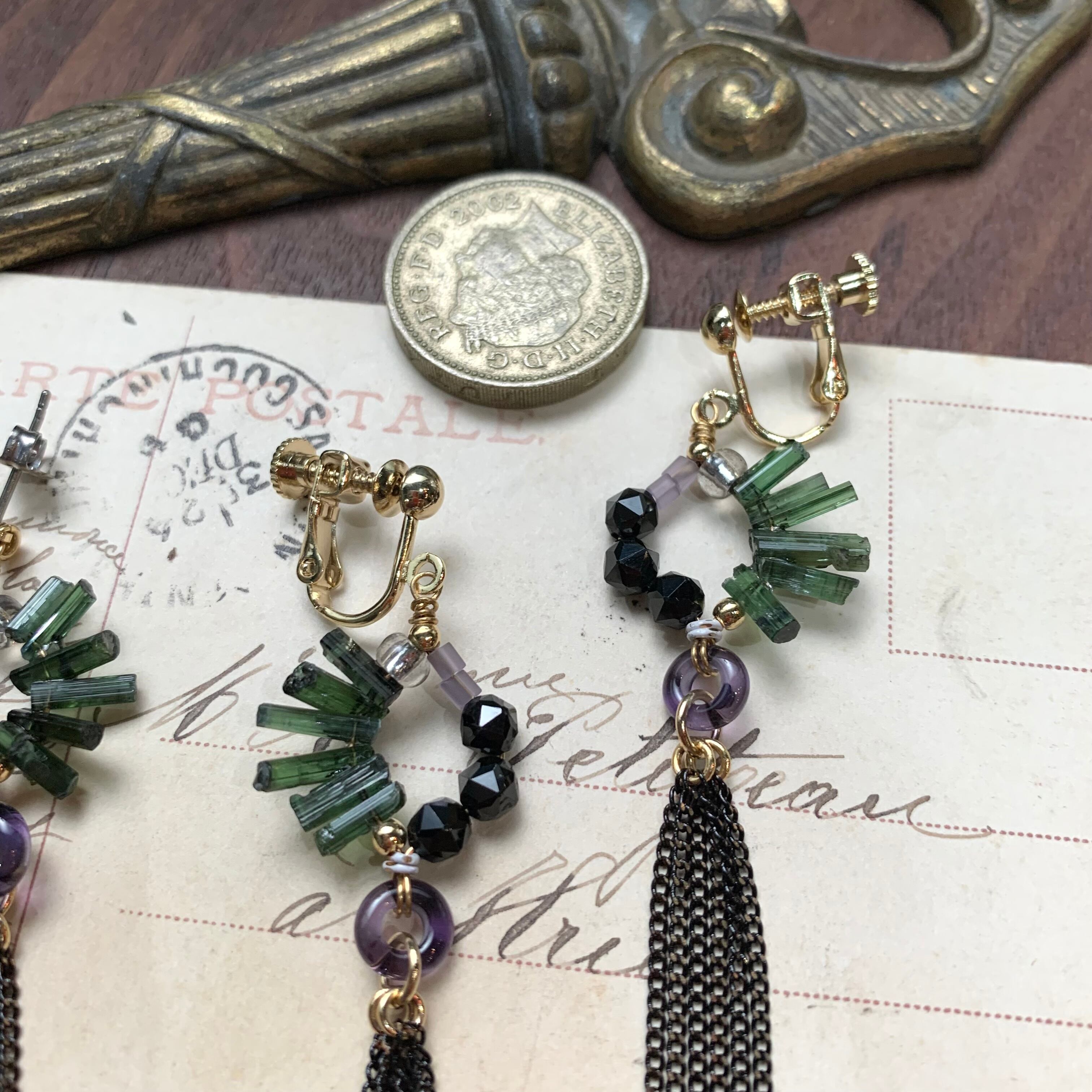 トルマリン&スピネル タッセルピアス AP901