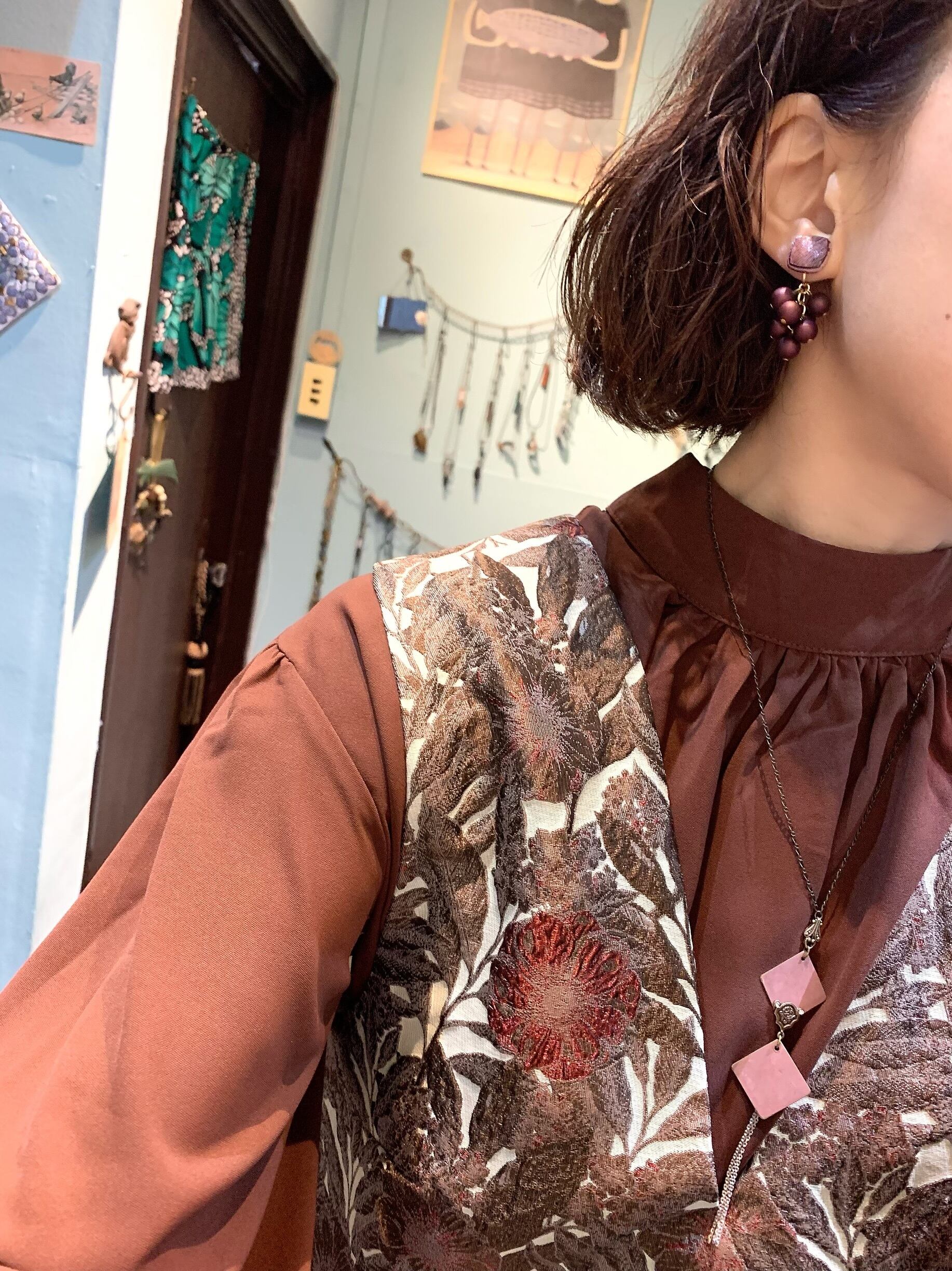メタルパーツを接着して縦に並べるといいかも!と思い付き、ネックレスになりました。