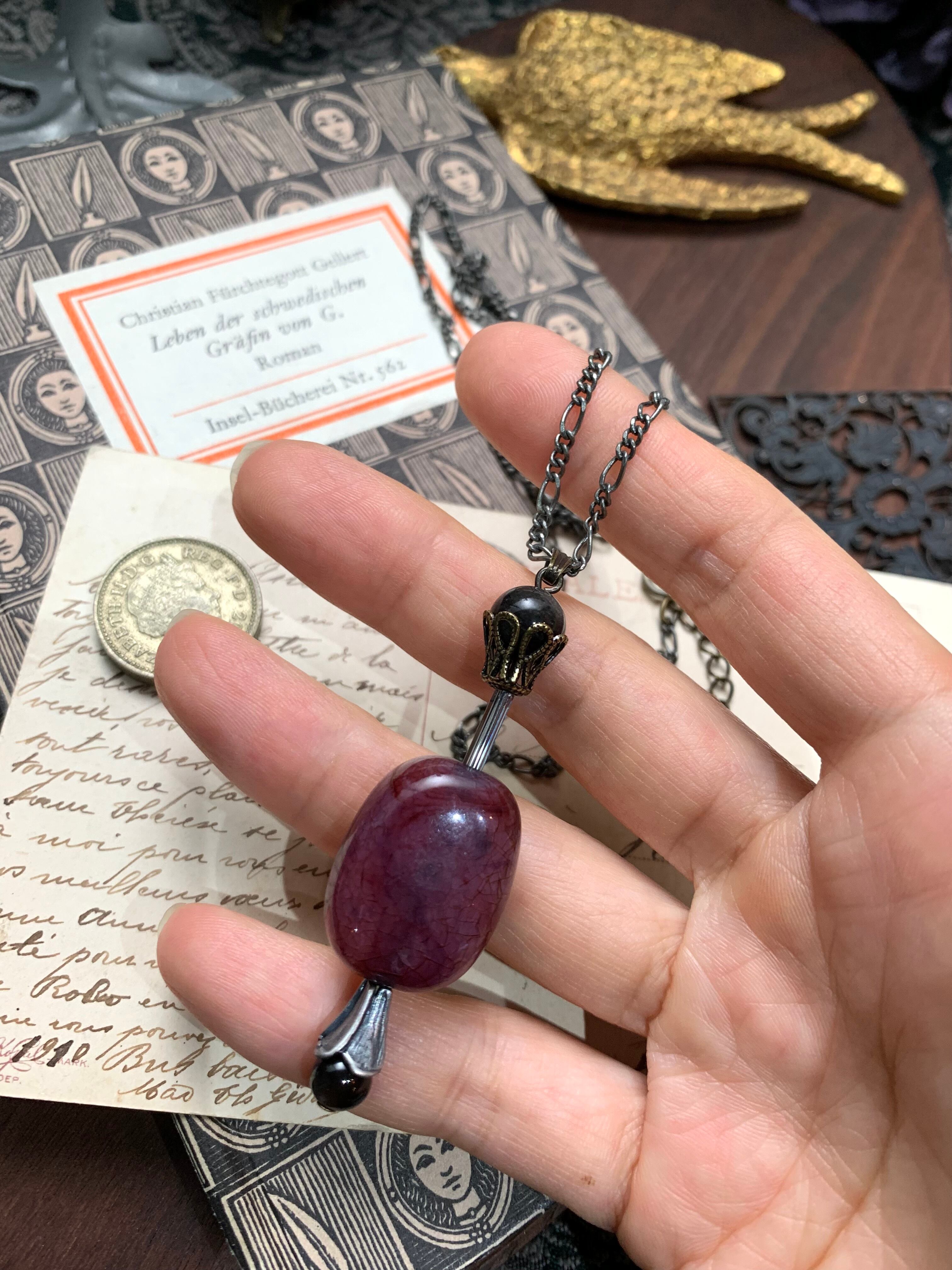 ほんのり透明感のある赤紫のヴィンテージビーズをメインに、ペンダントトップをデザインしました。