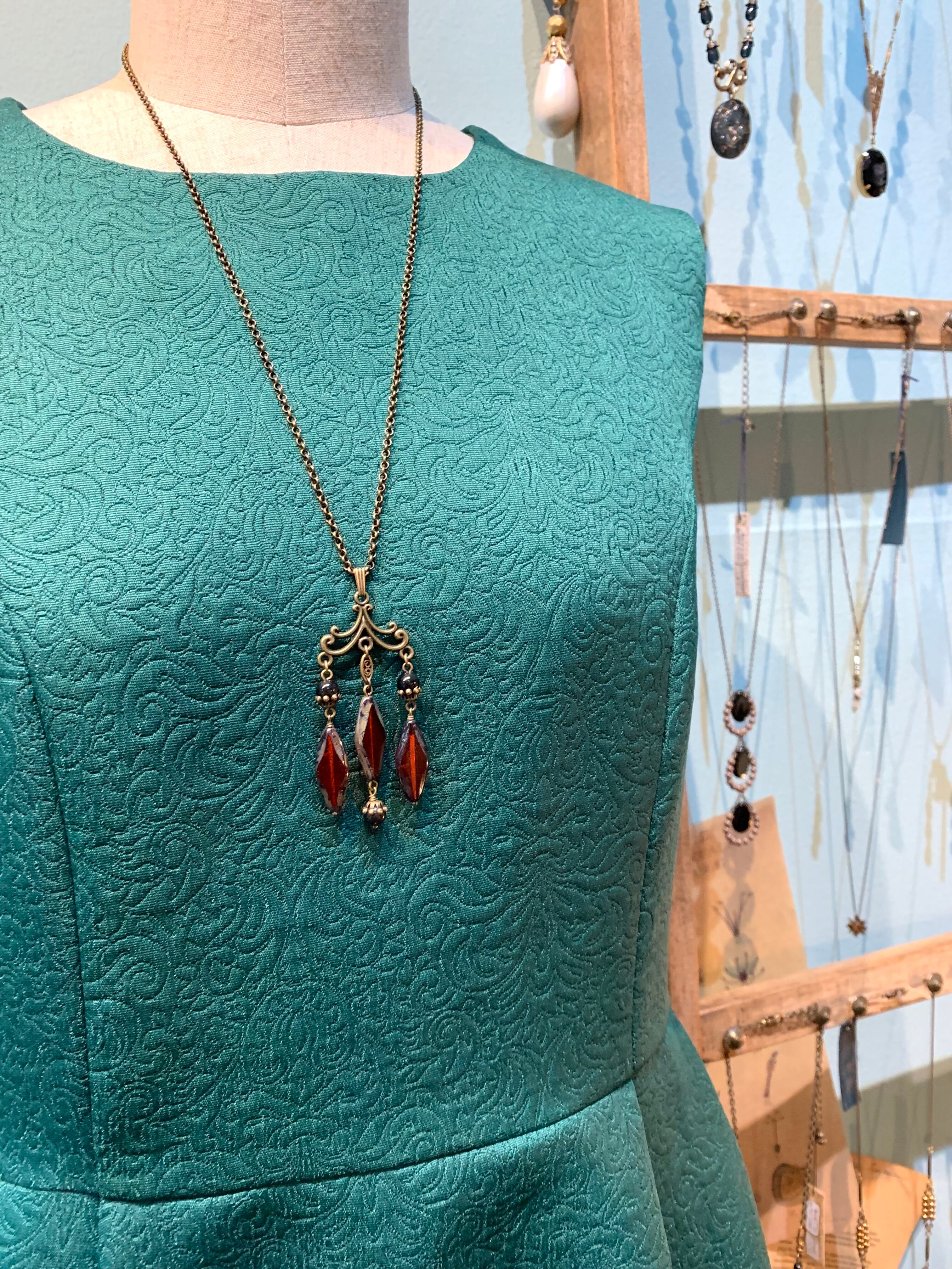 個性的なオレンジのチェコガラスが色鮮やかです。