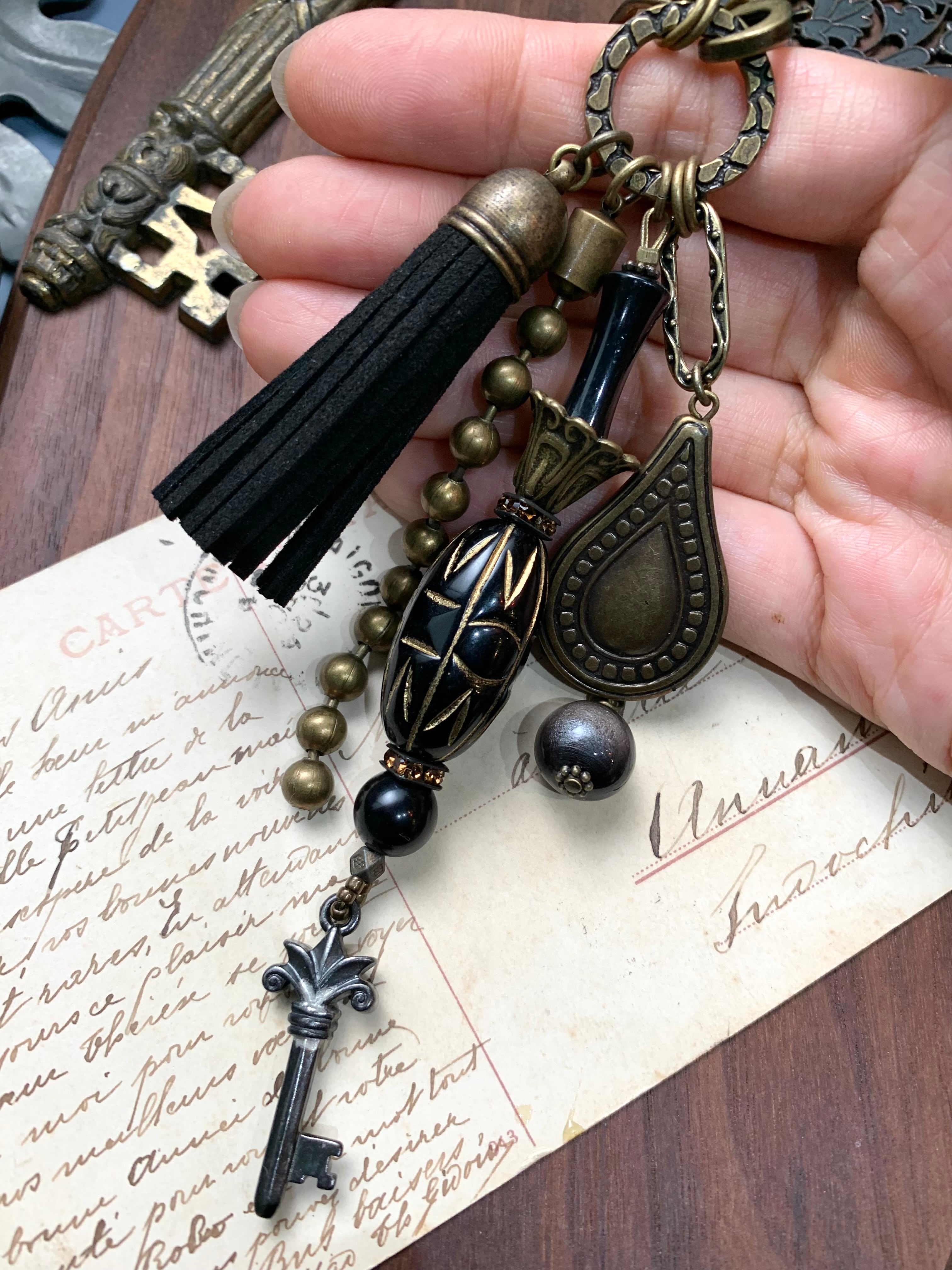 バッグチャーム(Blackタッセル&Key )AA481